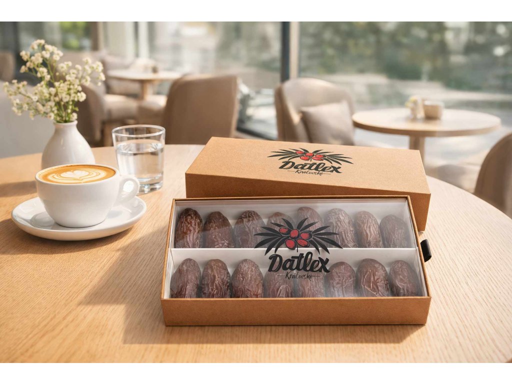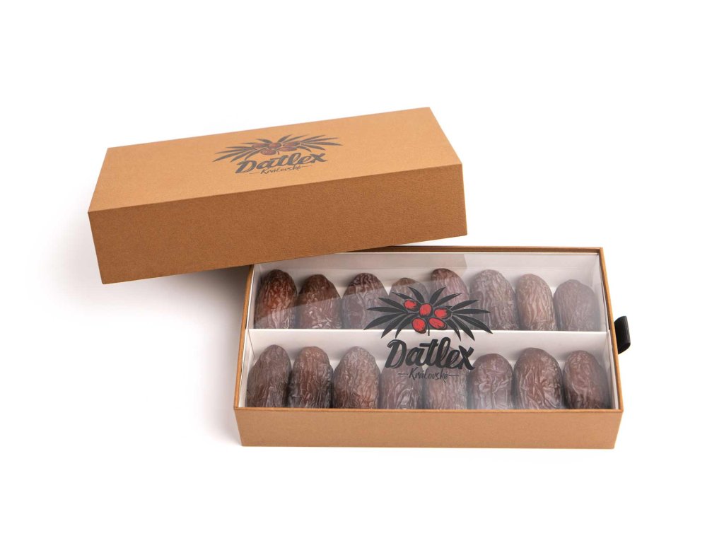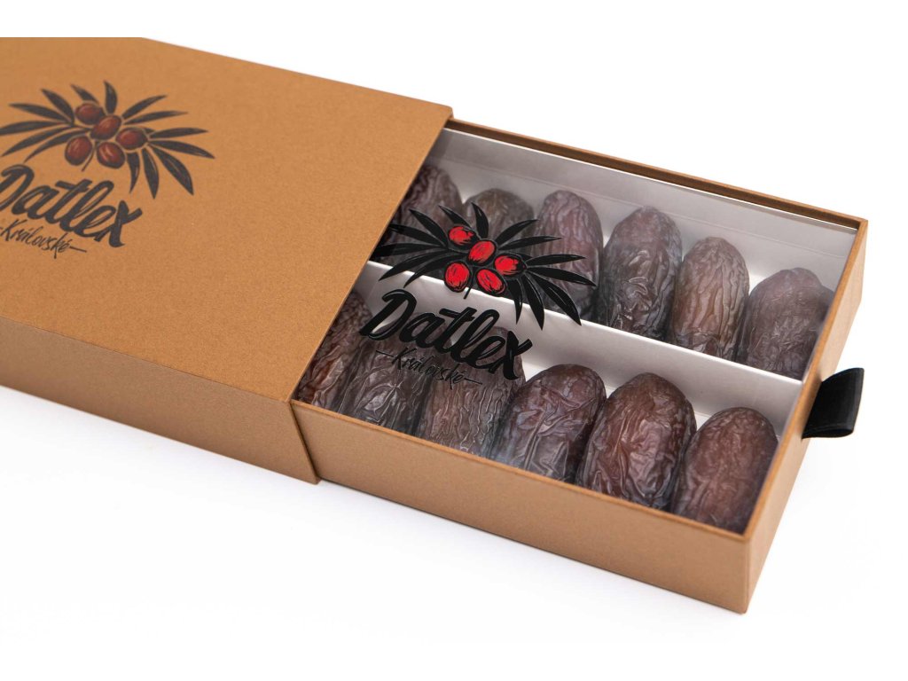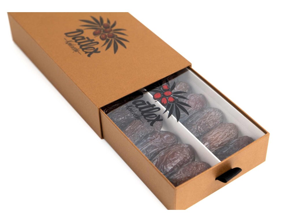 • Elegantní servírování: Dárková krabice je navržena tak, aby datle mohly být servírovány přímo v ní. Vypadá reprezentativně na slavnostním stole a zároveň chrání přirozenou šťavnatost plodů.
