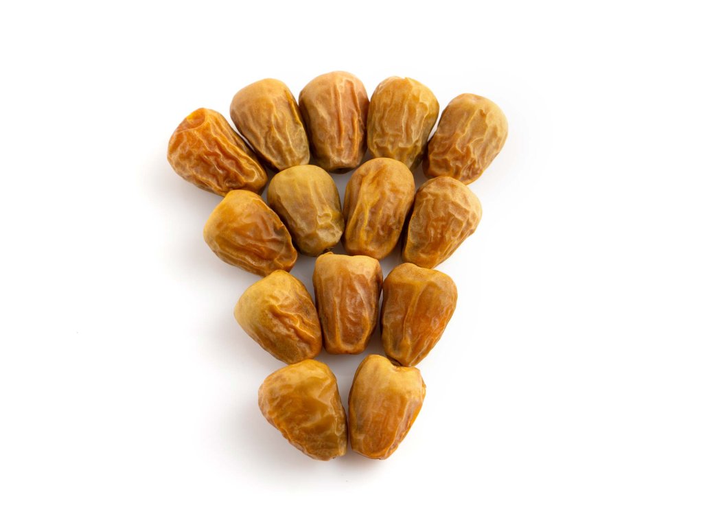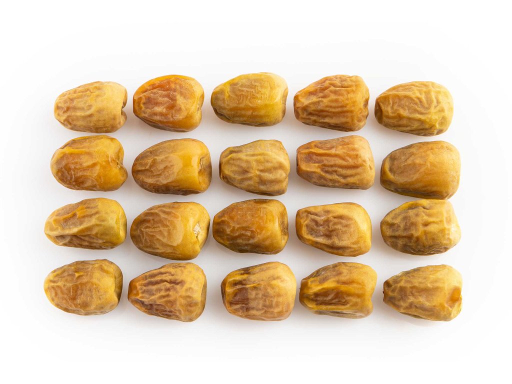 • Přírodní stav s peckou: Datle jsou dodávány v jejich autentické, nezpracované podobě a každý plod obsahuje jednu pecku. Díky měkké a poddajné textuře těla těchto datlí lze však pecku velmi snadno odstranit prsty nebo lehkým naříznutím.