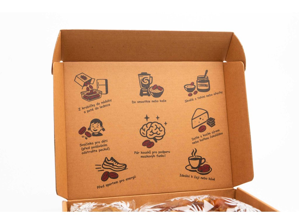 • Po doručení: Jakmile obdržíte svou zásilku, doporučujeme datle přesypat do hermeticky uzavíratelného kontejneru a umístit je do chladničky.